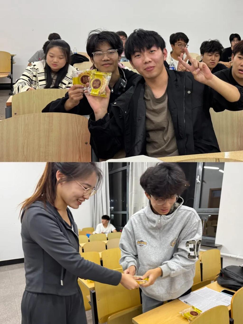 就像没有刻意的叮嘱,也没有沉重的期许,一块小小的月饼,家人递来的点心,简单又妥帖。同学们接过月饼的模样虽是各不相同的,但心中装着的温暖都是一样的,这份带着牵挂的节日礼物,不仅让同学们在努力学习中感受到了节日的仪式感,更凝聚了学院对每一位追梦人的期许。
